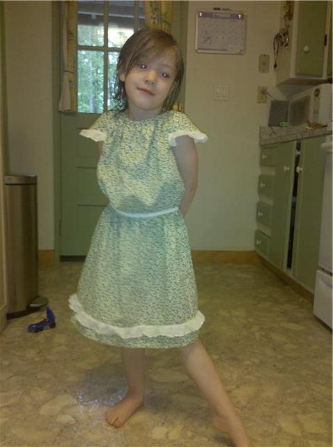 This was a fitted sheet that one of my friends gave to me. I was able to make her daughter and mine matching dresses. I tried to make pants for my daughter and son but I messed those up.